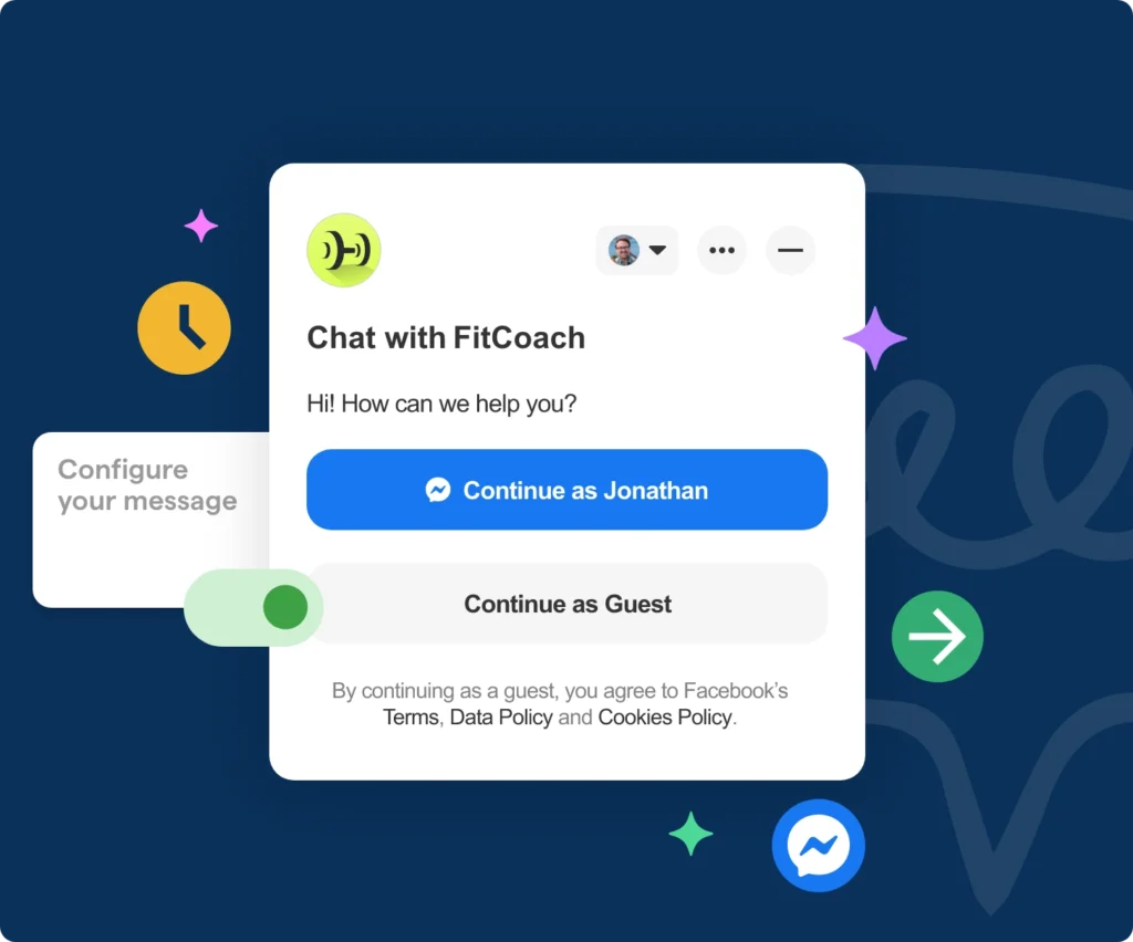 Display your Facebook Chatbot’s widget on your site, app, or any other system. Also, use QR codes and links to redirect users to your bot.