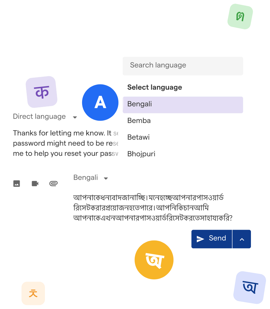 Support in 40+ languages across web, mobile, WhatsApp, IVR, and more